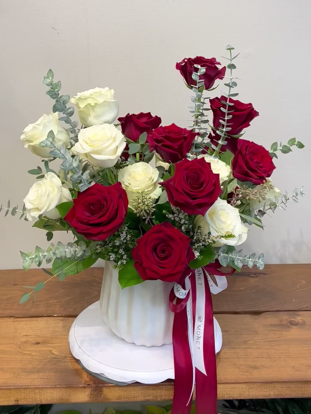 Our Classic Rose Arrangement are made with premium Ecuadorian roses. Feature with Roses with accent of seasonal foliage.